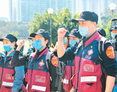 2月20日,福建省第十一批支援湖北抗击新冠肺炎疫情医疗队在出发前集体宣誓。 新华社记者 魏培全 摄
